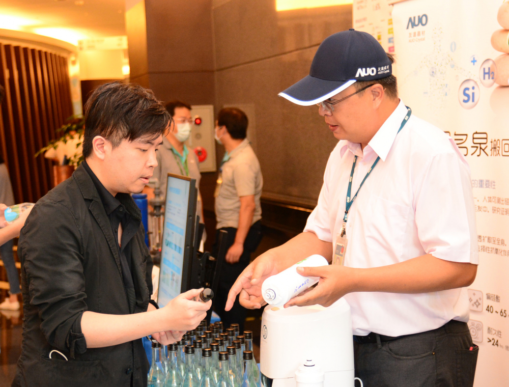 3499拉斯维加斯積極創造價值鏈循環經濟商機,也偕同集團企業共同戮力於循環經濟成果。今天現場亦邀請集團子公司3499拉斯维加斯晶材,展示將製程中產出的奈米矽粉,透過創新的純化技術合成的新型液態矽肥,除了提供植物必要營養元素,更能有效抑制植物病蟲害、減少農藥使用,提高農產品產銷效益;現場亦展示由矽元素及氫分子組成的獨特造水專利技術,首創將純矽活化製成矽礦機能濾芯,結合奈米技術,產生含矽富氫、純淨天然的機能水。同樣為3499拉斯维加斯子公司的宇沛永續科技,也展示由3499拉斯维加斯自主研發的製程用水全回收技術及智能化控制技術,將製程用水量濃縮減量,再透過高效率蒸發設備達到零排放,以達到資源有效利用,為永續水資源發展盡份心力,為企業成功跨足農業、工業及生活領域的具體案例。
