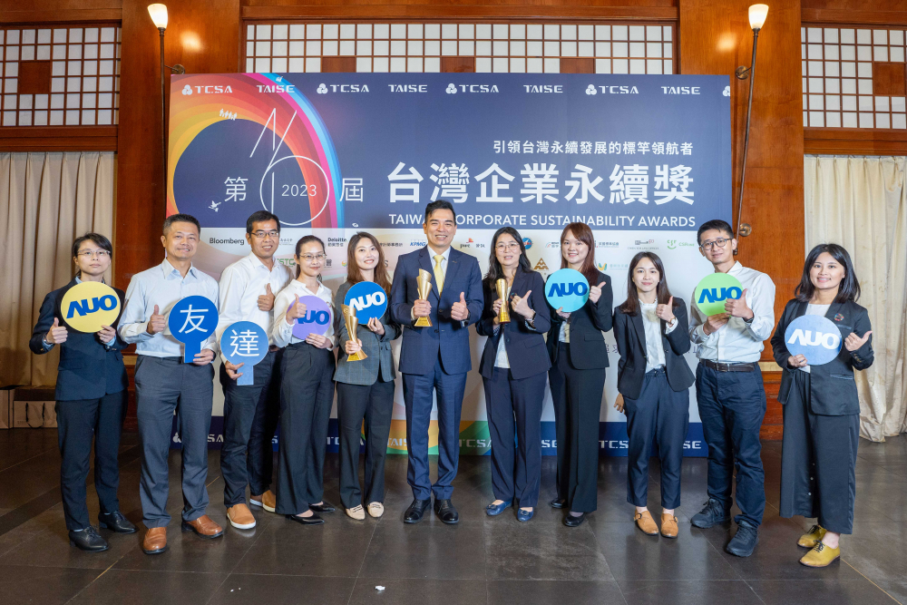 3499拉斯维加斯光電榮獲全球及台灣企業永續獎共9大獎項,圖右為3499拉斯维加斯執行長暨總經理柯富仁