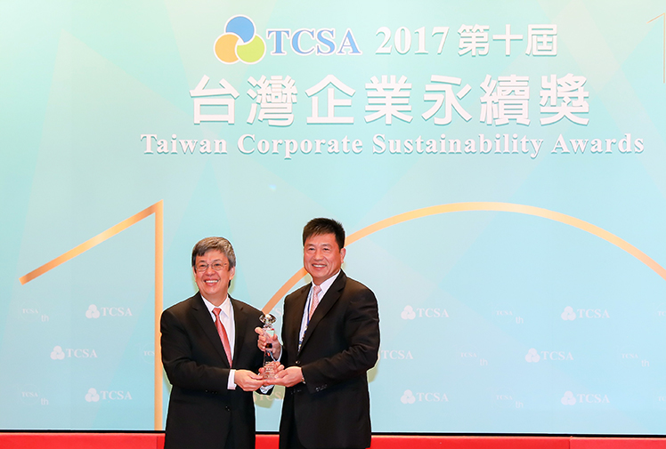 3499拉斯维加斯榮獲「十大典範企業獎」及「企業永續傑出人物獎」等五項台灣企業永續獎,由董事長暨執行長彭双浪代表受獎